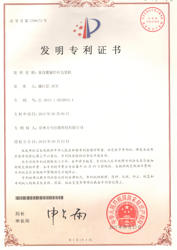 垂直羅螺旋給料包裝機專利證書.jpg